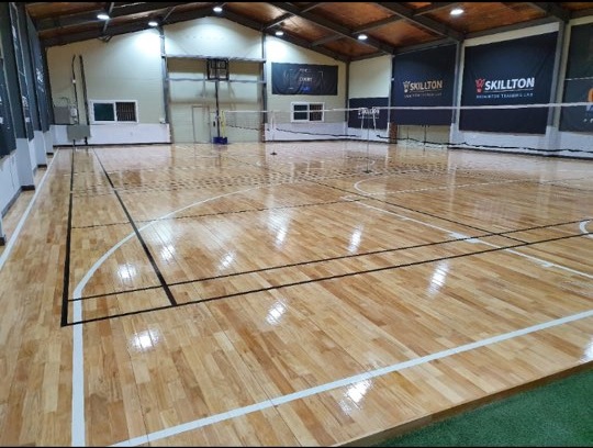 천장이 낮아 일반적인 배드민턴 전용 체육관 또는 학교 체육관과 달리